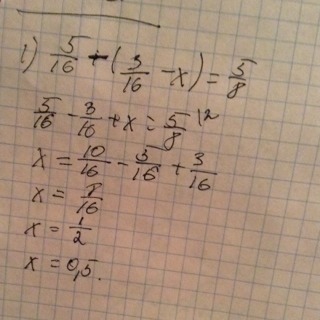 x = 5/8 - 1/16 16/16 x = 19/16 - 1/16