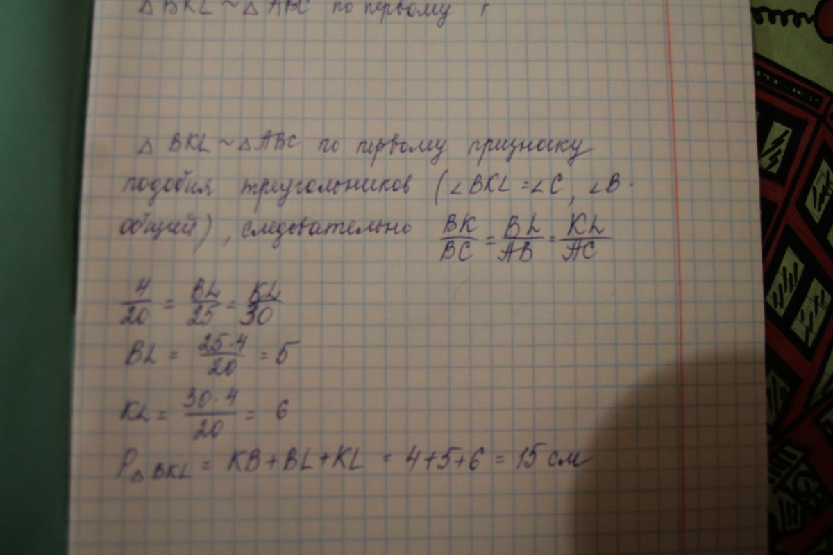 Решение ниже. Ответ: Периметр Δ ВКL=15 cм