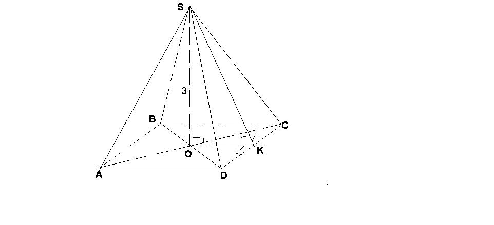 Дальше смотри чертеж.SK перпенд. CD, OK перпенд.DC, угол SKO искомый