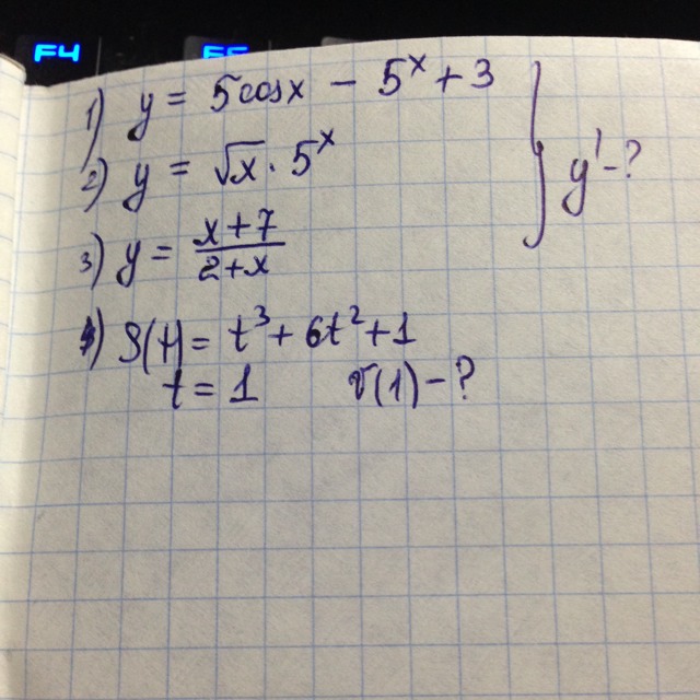 2.;y=sqrt xcdot5^x\y'=frac1{2sqrt x}cdot5^x+sqrt xcdot5^xln5\3.;y=frac{x+7}{2+x}\y'=frac{2+x-(x+7)}{(2+x)^2}=frac{2+x-x-7}{(2+x)^2}=-frac5{(2+x)^2}