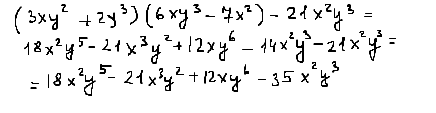 ... = 18ху^6 + 14x^2y^3 - 21x^2y^3 = 18xy^6 + 39x^2y^3 = 3xy^3 (6y^3 + 13x)