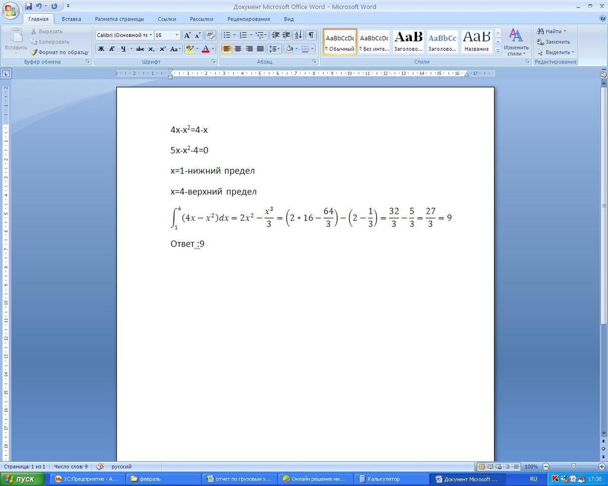 срочно!!!!!вычислить площадь фигурысрочно!!!!!вычислить площадь фигуры ограниченной линиями y=4x-x^2; y=4-x