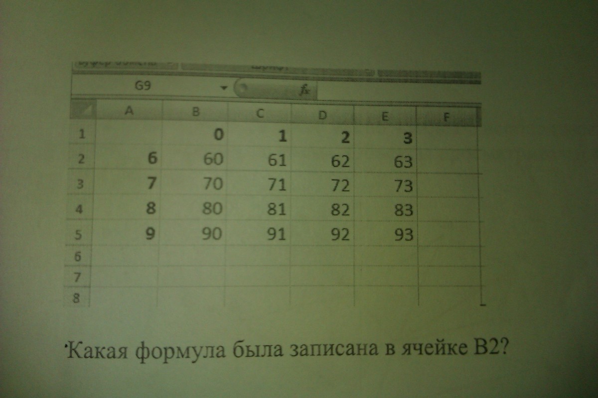 с помощью электронных таблиц построить таблицу двузначных чисел от 60 до 99.Для этого сначала в диапазоне В1:К1 он записал числа от 0 до 9, ив диапазоне А2:А5 он записал числа от 6 до 9. Затем в ячейку В2 записалформулу двузначного числа (А2 - число десятков; В1 - число единиц), послечего скопировал её во все ячейки диапазона B2:К5. В итоге получил таблицу двузначных чисел. фрагмент которой представлен на рисунке.