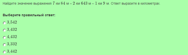 т.к. 1км=1000м,то 7084-2643-1009=3432м