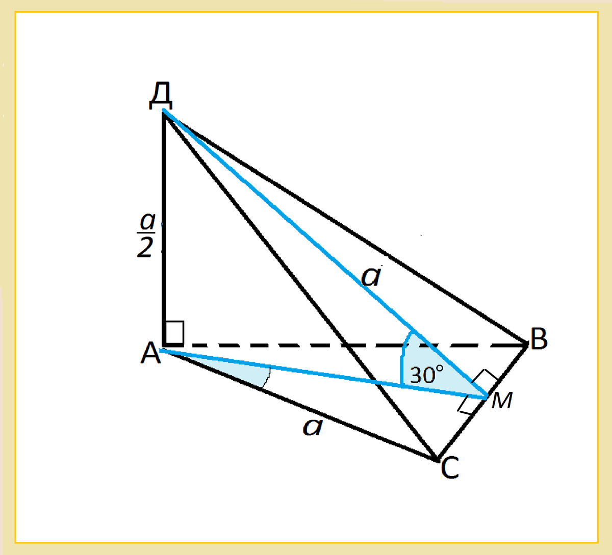 основанием пирамиды ДАВС является правильный треугольник сторона которого равна а, ребро ДА перпендикулярно к плоскости АВС а плоскость ДВС составляет с плоскостью АВС угол 30 градусов.найдите площадь боковой поверхности пирамиды.