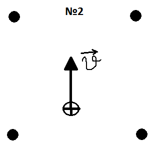 2. В однородное магнитное поле, линии которого направлены на нас, влетает положительно заряженная частица. Определите направление действующей на нее силы.