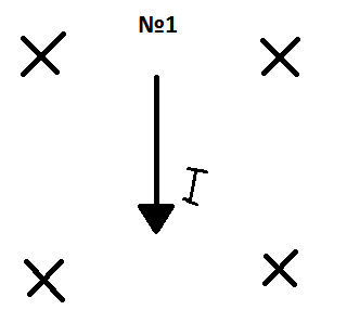 1)Определим Силу Лоренца, действующую на проводник с током, по первому правилу левой руки. Расположим руку так, что бы линии магнитной индукции, идущие от нас, входили в ладонь, а 4 пальца были направлены по направлению силы тока I, тогда отогнутый на 90 градусов большой палец укажет направление силы Лоренца. В данном случае сила будет направлена в право под прямым углом.