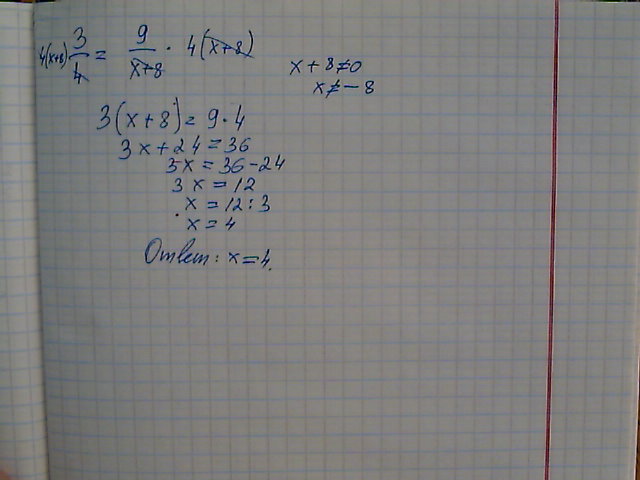 3/4=9/х+8,дополн.множ. х+8 и 4