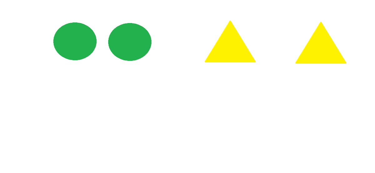 нарисуй 2 зелёных круга и 2 желтых треугольника