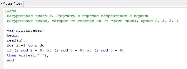 натуральных чисел, которые не делятся ни на какие числа, кроме 2, 3, 5.