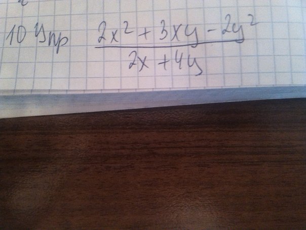 Умножим числитель и знаменатель на 2, получим в числителе 4х в квадрате+ 6ху-4у в квадрате, а в знаменателе 4х+8у. Пишем в числителе: 4х в квадрате+ 6ху+ 2,25у в квадрате- 2,25у в квадрате- 4у в квадрате, знаменатель тот же. В числителе получаем : (2х+1,5) в квадрате- 6,25у в квадрате, знаменатель тот же. Далее в числителе применяем формулу разности квадратов: ( 2х+1,5у-2,5у)(2х+1,5у+2,5у), знаменатель тот же. Числитель: (2х-у)(2х+4у), в знаменателе выносим 2( 2х+4у). Сокращаем на ( 2х+4у). Ответ: 2х-у/2