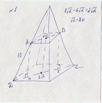 2)Найдите высоту правильной четырехугольной усеченной пирамиды, боковое ребро которой равно 10 см, а площади оснований равны 18 см^2 и 128 см^2.