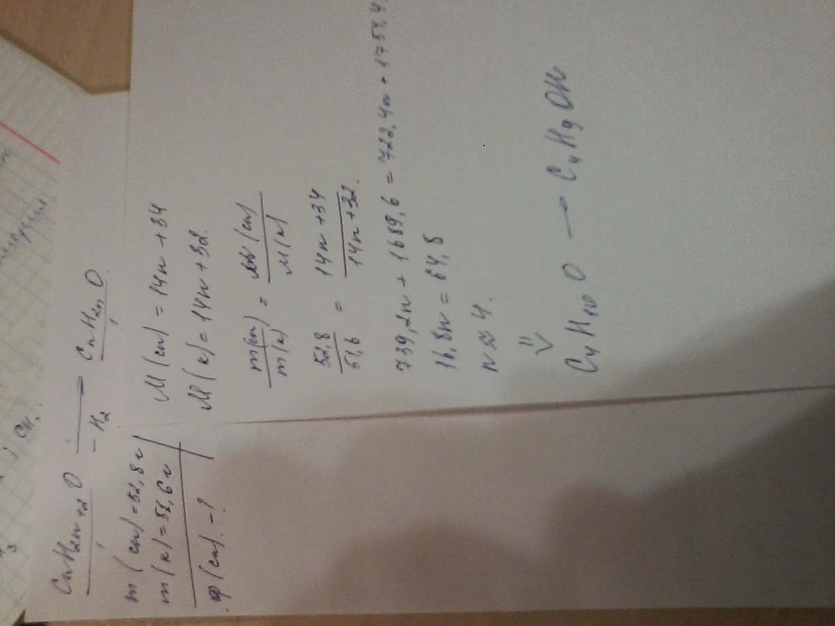 очень срочно помогите пожалуйста . При дегидрировании 52,8 г предельного спирта получили 51,6 г кетона. Установите молекулярную формулу спирта.