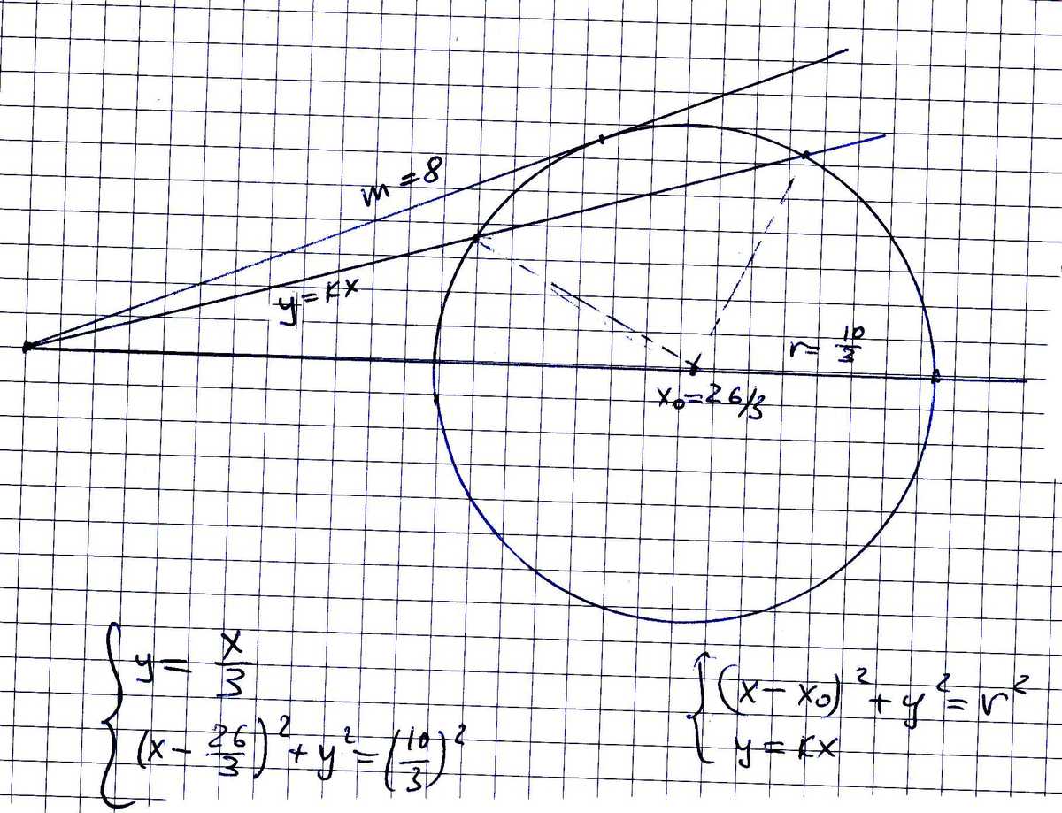 (x - 26/3)^2 + y^2 = (10/3)^2; (это просто теорема Пифагора :))