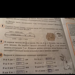 1. 50 3/8 - 4 1/8 = 46 1/4(кг) - во 2-м мешке