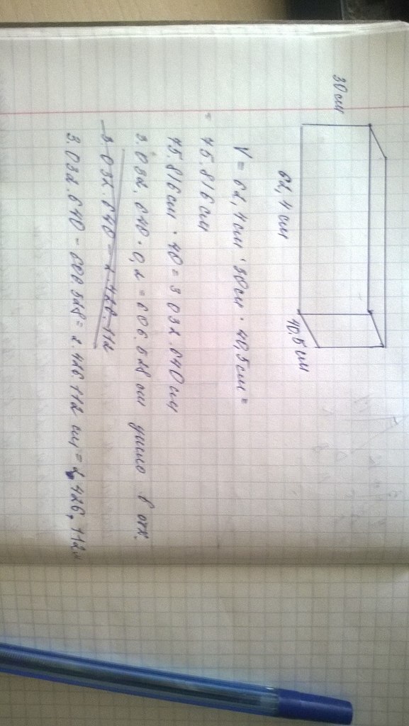 62,4 см. Ширина 40,5 см,а высота 30 см. Сколько квадратных метров