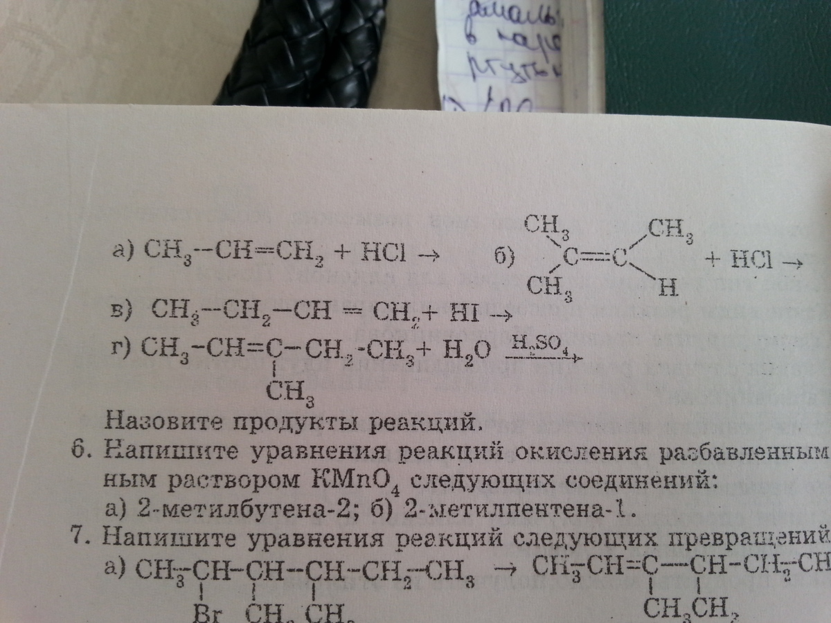 2) CH3-C(-CH3)=CH-CH3 + HCl -> CH3-CCl(-CH3)-CH2-CH3