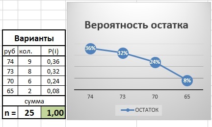 Р(74) = 9/25 = 0,36 = 36% и далее.