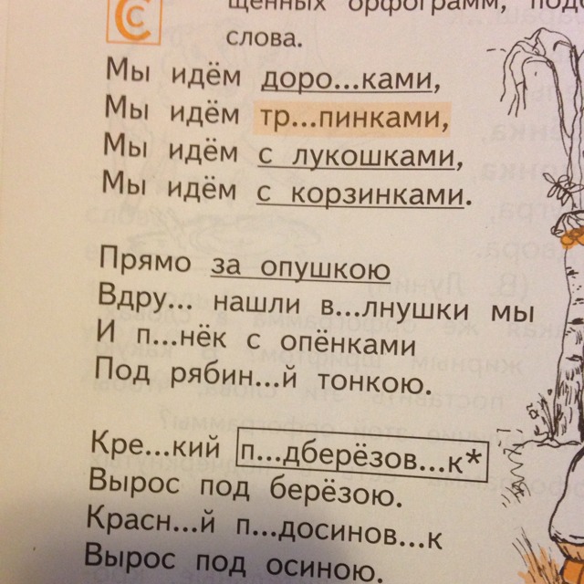 1)ДороЖками, трОпинками, вдруГ, вОлнушки, пЕнёк, рябинОй, креПкий, пОдберёзовИк, краснЫй, пОдосиновИк.