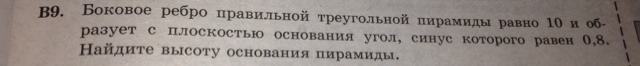 А, там была высота основания, а не пирамиды... Неправильно прочитала условие. Сейчас исправлю.