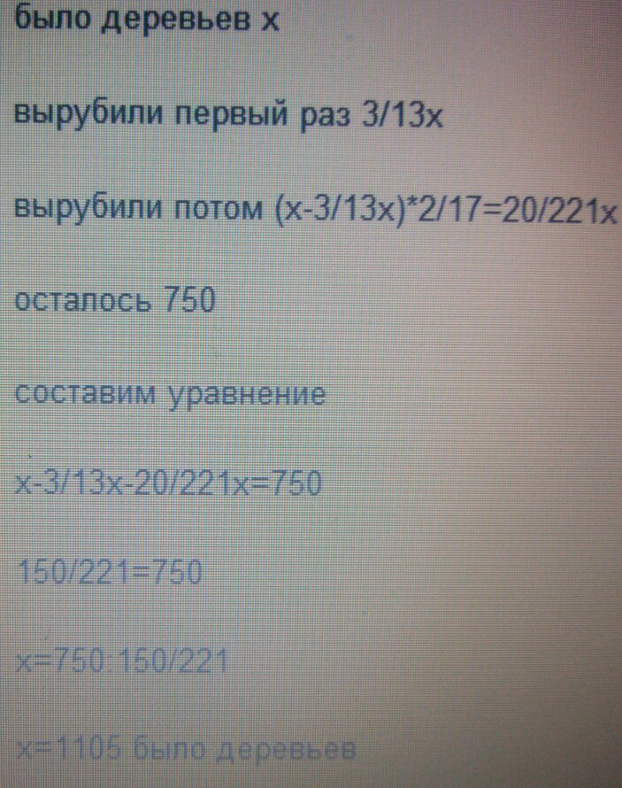 вырубили потом (х-3/13х)*2/17=20/221х
