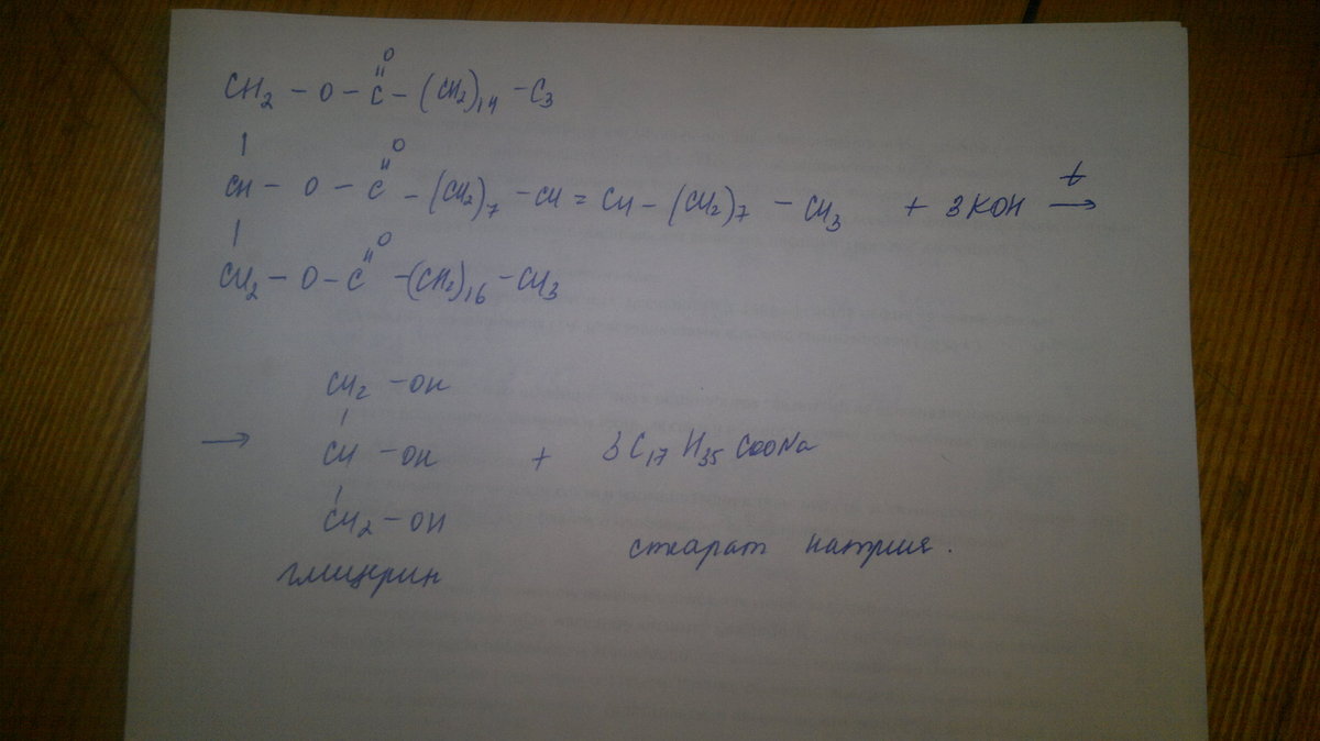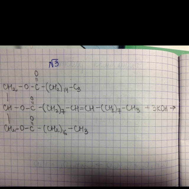 CH2-OCO-(CH2)7-CH=CH-(CH2)7-CH3 + 3KOH ->