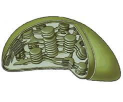 3.На рисунке изображён хлоропласт, который можно узнать по наличию в нём 1) крист 2) полостей и цистерн 3) гран 4) ядрышек