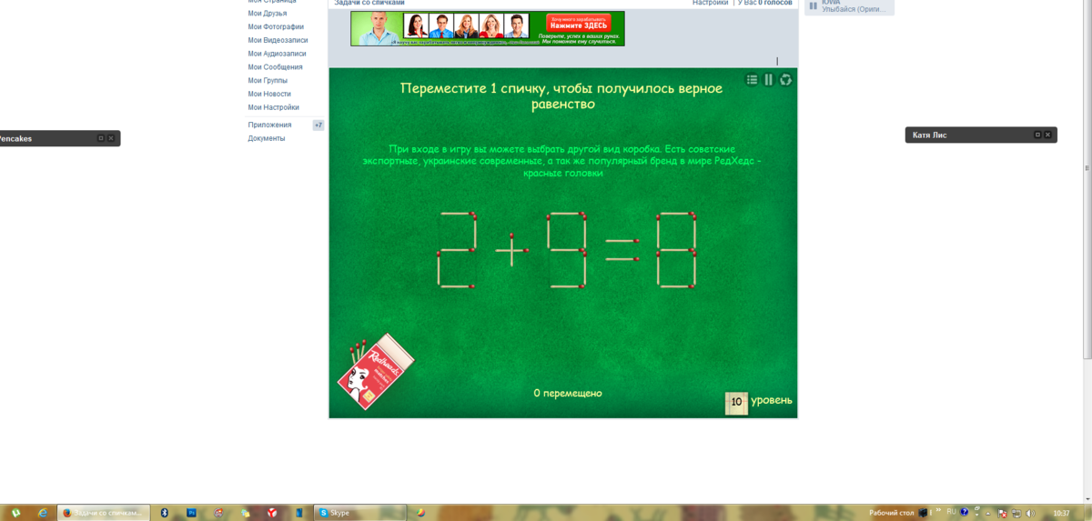 У цифры 9 справа верхнюю спичку надо переместить влево вниз, чтобы из 5 получилось 6. Тогда 2+6=8.