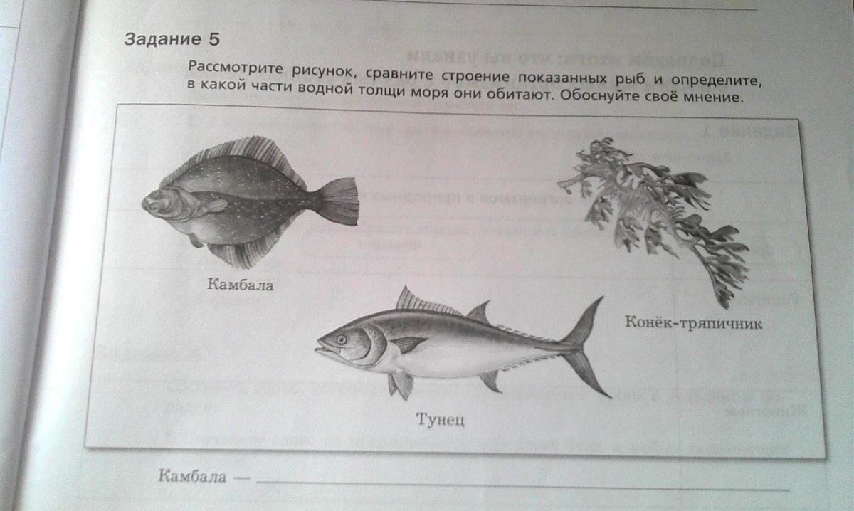 рассмотрите рисунок сравните строение показанных рыб и определите в какой части водной толщи моря они обитают . Обоснуйте свое мнение