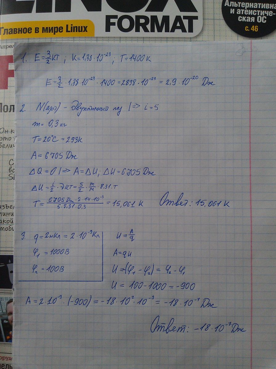 1.Какова кинетическая энергию газа, если его температура 1400К?