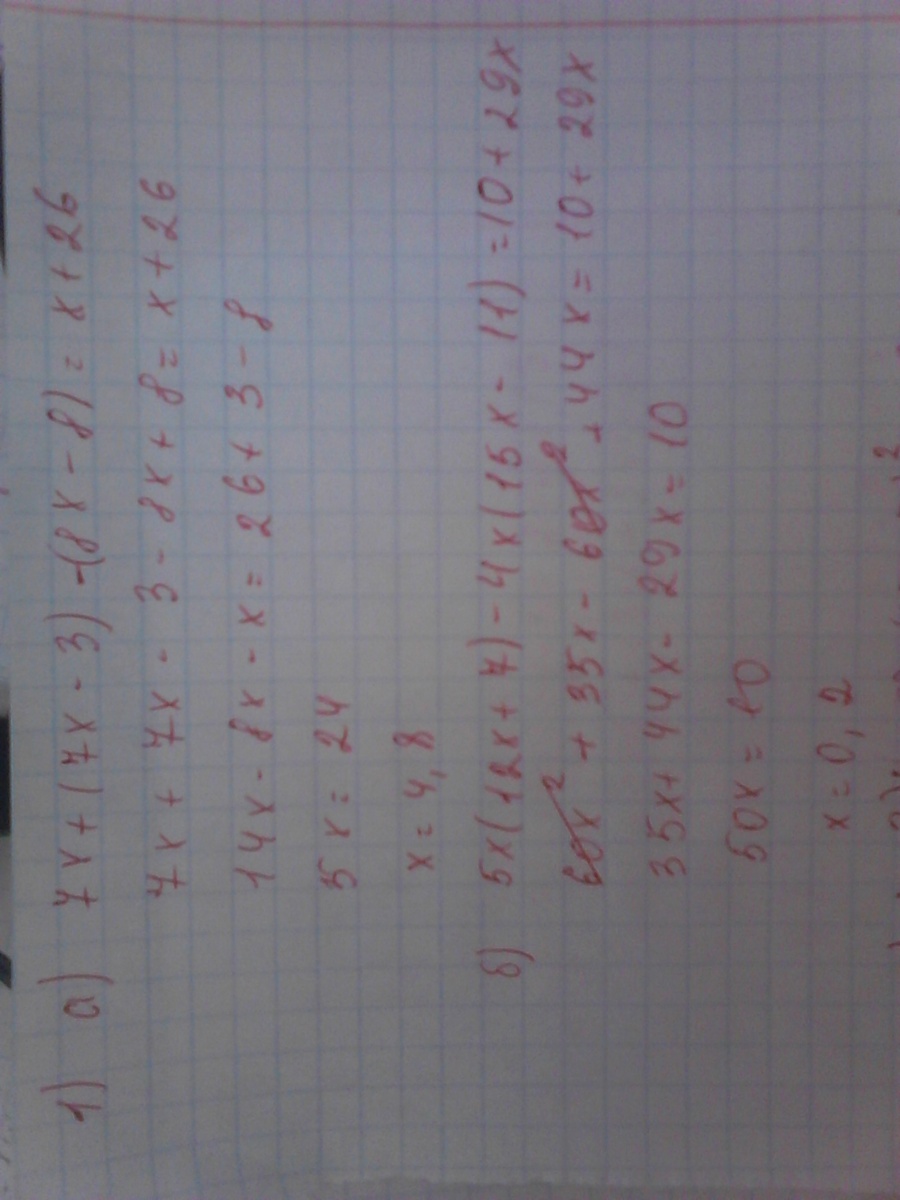 1) а) 7x+(7x-3)-(-8x-8)=x+26