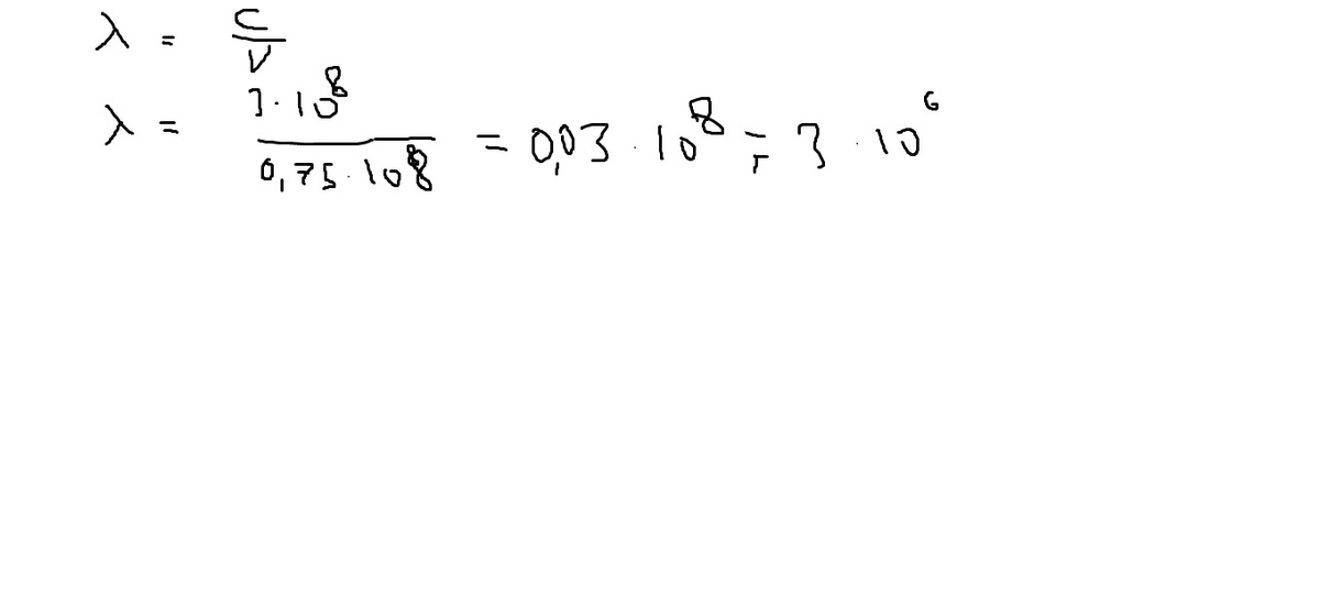 Радиостанция работает на частоте 0,75 · 108 Гц. Какова длина волны, излучаемой антенной радиостанции? Скорость распространения электромагнитных волн 300 000 км/с.