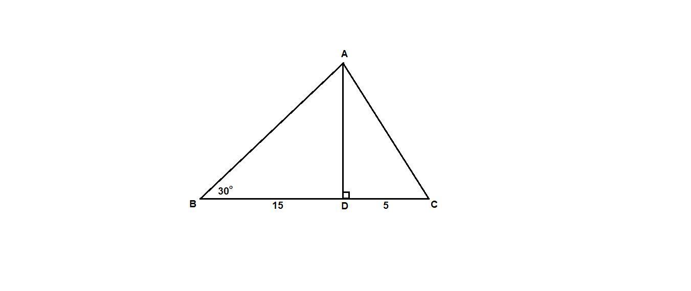 Высота AD треугольника ABC делит сторону BC на отрезки BD и CDтак, что ВD =15 см, CD = 5 см. Найдите сторону АС, если угол B = 30.