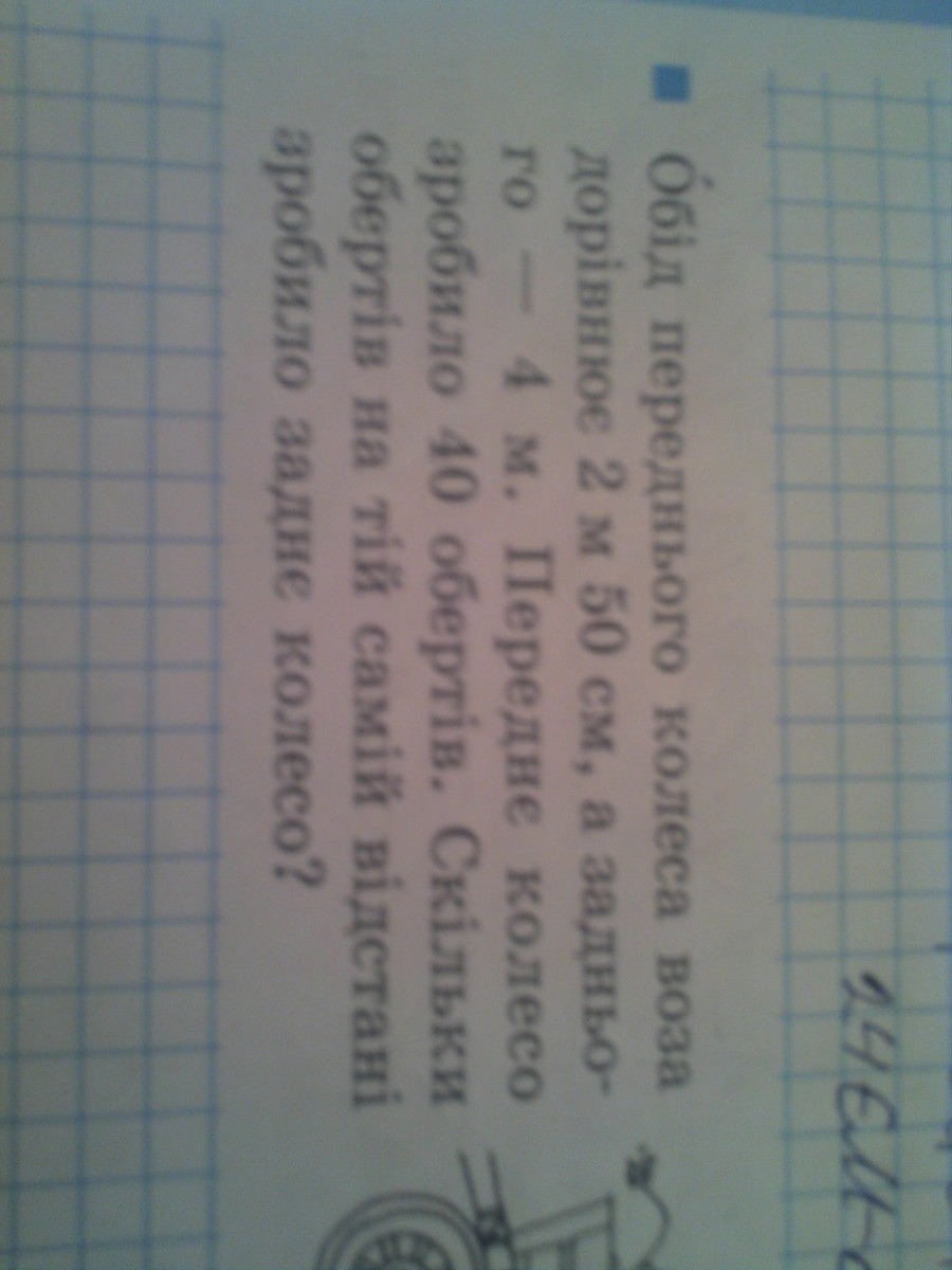 Обод переднего колеса воза равна 2м 50см, а заднего. 4м. Переднее колесо сделало 40 оборотов. Сколько оборотов на том же расстоянии сделало заднее колесо?