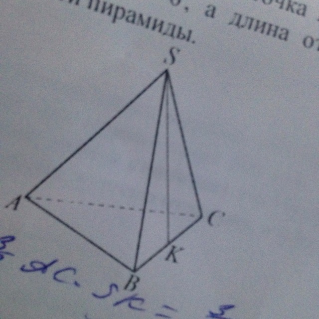 1. В правильный треугольник SABC точка К-середина ребра BC , S- вершина. Известно, что АВ=6, а длина отрезка SK=7. Найдите площадь боковой поверхности пирамиды.