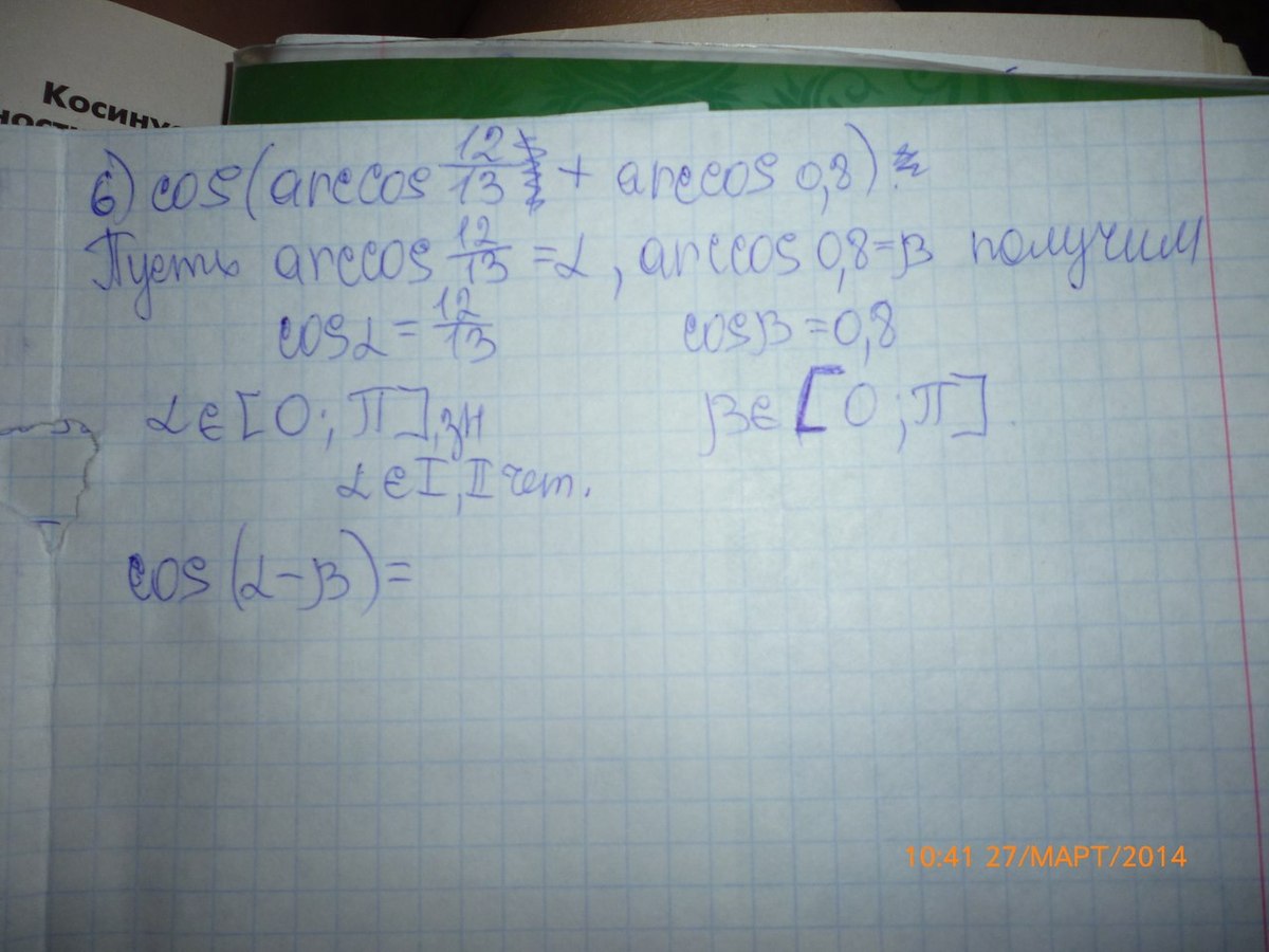 cos(arccos12/13=arccos0,8)=cos(a+b)=cosacosb-sinasinb=12/13*4/5-5/13*3/5=