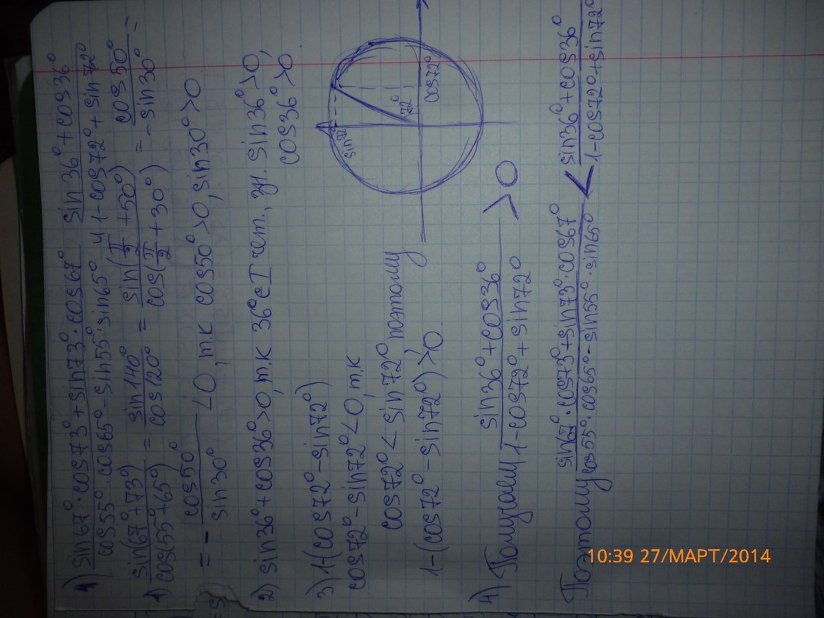 (sin36+cos36)/(2sin²36+2sin36cos36)=(sin36+cos36)/2sin36(sin36+cos36)=1/2sin36>0