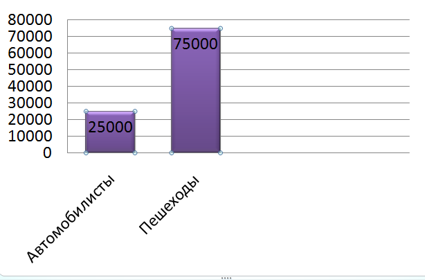 в городе у 25 000 жителей есть автомобиль а у остальных 75000-нет.Постройте круговую и столбчатую диаграммы.Помогите плиз!