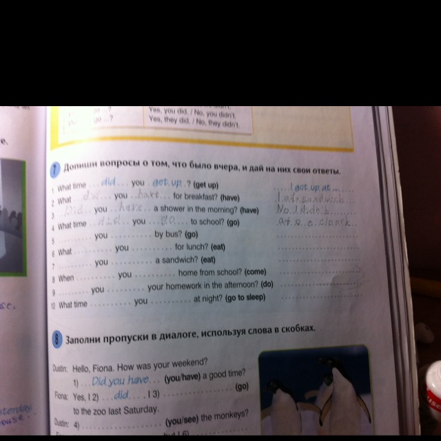 10. What time did you go to sleep at the night? I went to sleep at.....