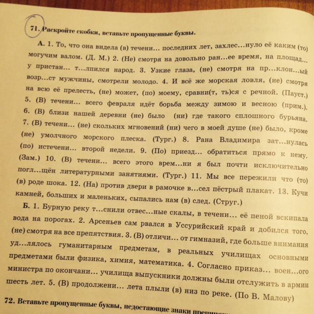 То, что она видела в течение последних лет, захлестнуло ее каким - то могучим валом. Несмотря на довольно раннее время, на площади у пристани толпился народ. Узкие глаза, несмотря на преклонный возраст мужчины, смотрели молодо. И все же морская ловля, несмотря на всю ее прелесть, не может, по - моему, сравниться с речной. В течение всего февраля идет борьба между зимою и весною. Вблизи нашей деревни не было нигде такого сплошного бурьяна. В течение нескольких мгновений ничего в моей душе не было, кроме неумолчного морского плеска. Рана Владимира затянулась по истечении второй недели. По приезде обратиться прямо к нему. В течение всего этого времени я был почти исключительно поглощен литературными занятиями. Мы все пережили что - то вроде шока. Напротив двери в рамочке висел пестрый плакат. Кучи камней, больших и маленьких, сыпались нам вслед.