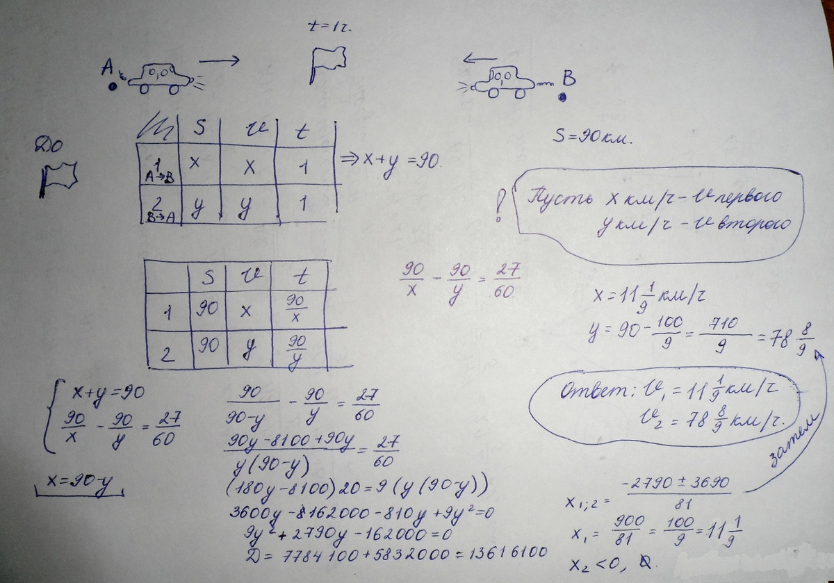 27 минут позже, чем второй прибыл в А. Расстояние между пунктами А и В равно 90 км. Найдите скорость