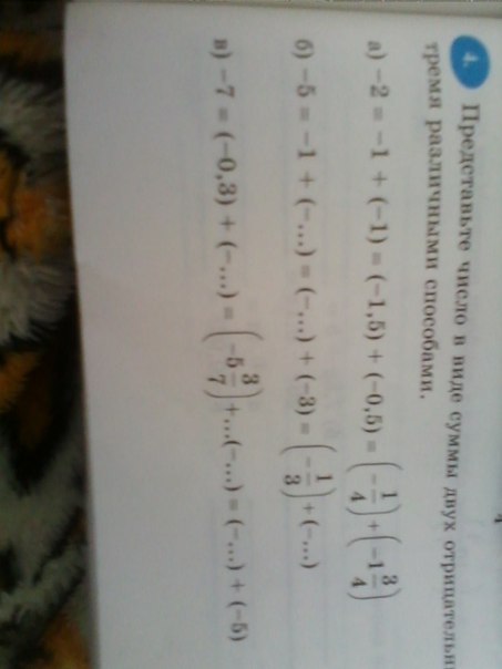 б) -5= -1+ (-4)= -2+ (-3)= (-1/3)+ (-14/3)