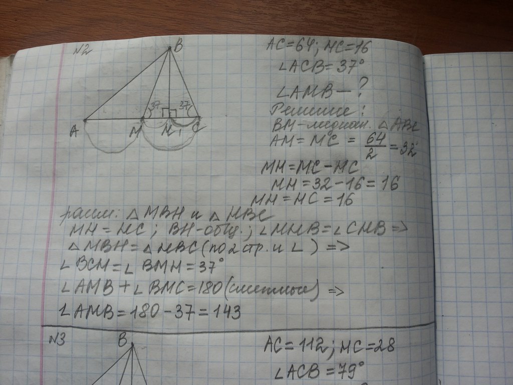 В треугольнике ABC BM – медиана и BH – высота. Известно, что AC=64, HC=16 и ∠ACB=37∘. Найдите угол AMB. Ответ дайте в градусах.
