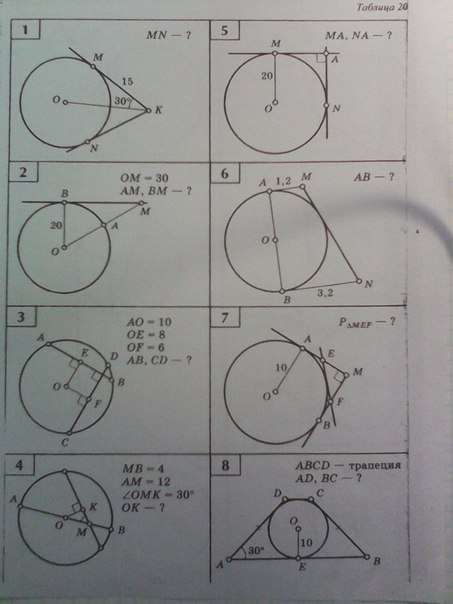 6) Решить не могу, но могу подсказать, что отрезки ( пусть Р - точка касания прямой и окружности между М и N ) АМ=РМ, РN=NB