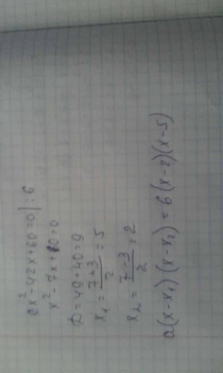 6( x^2 - 7x + 10) = 6(x^2 - 2x - 5x + 10) = 6(x(x - 2) - 5(x - 2)) = 6 (x-2)(x-5)