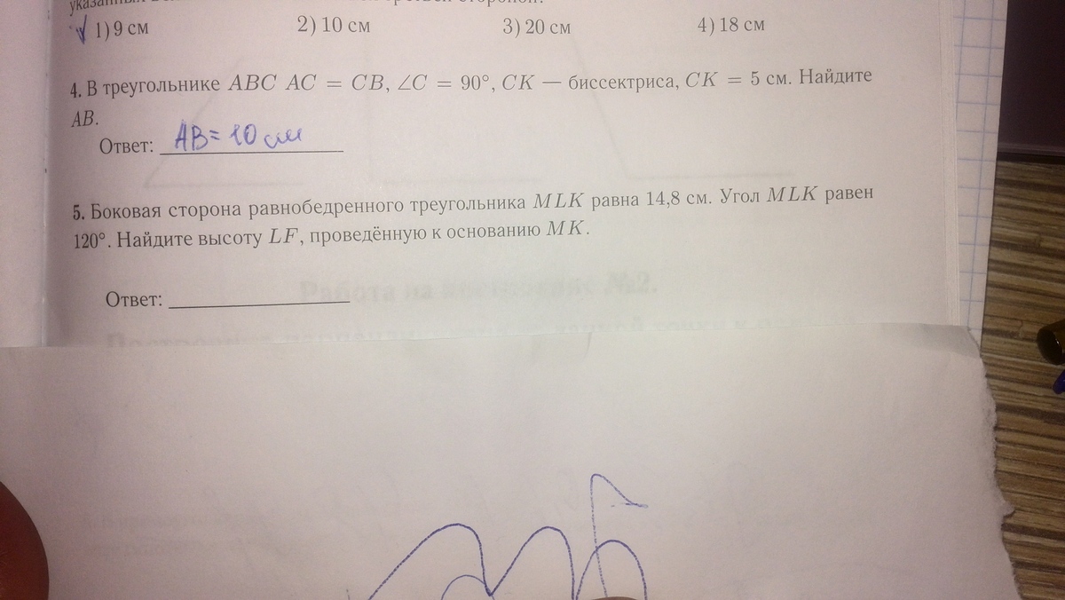 Рассматриваем прямоугольный треугольник mlf. Получается lf:ml=cos 60, lf:14,8=0,5