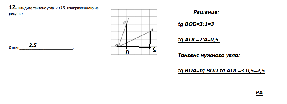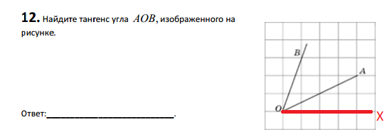 Тангенсы углов XOA и XOB можно посчитать "по клеточкам" (тангенс острого угла прямоугольного треугольника = отношение противолежащего катета к прилежащему):