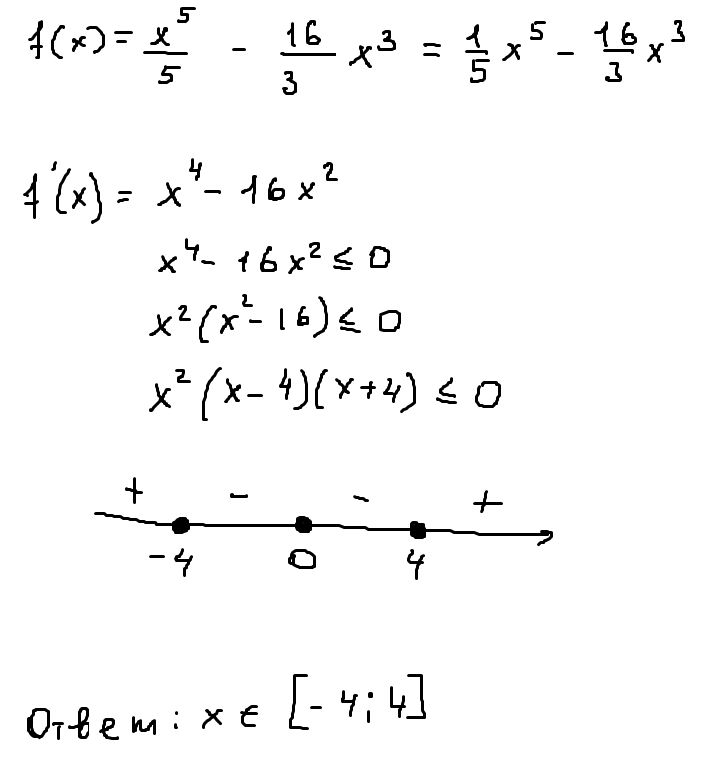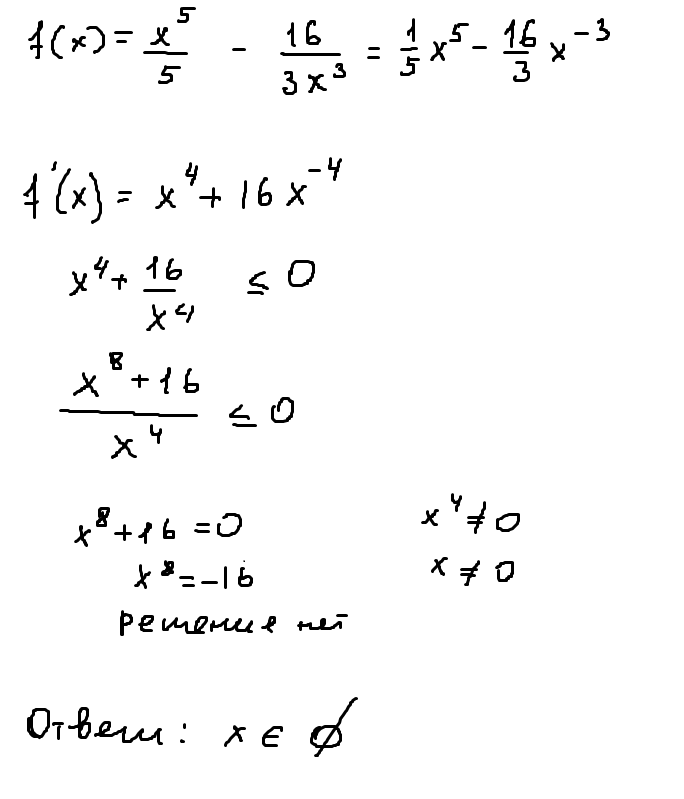 f(х)= х(в 5 степени) деленное на 5 - 16 деленное на 3, умноженное на х (в кубе).