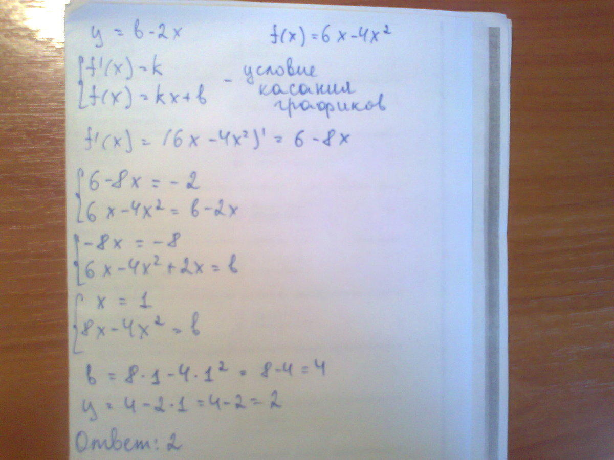 Прямая у=b-2x является касательной г графику функции 6х-4х^2