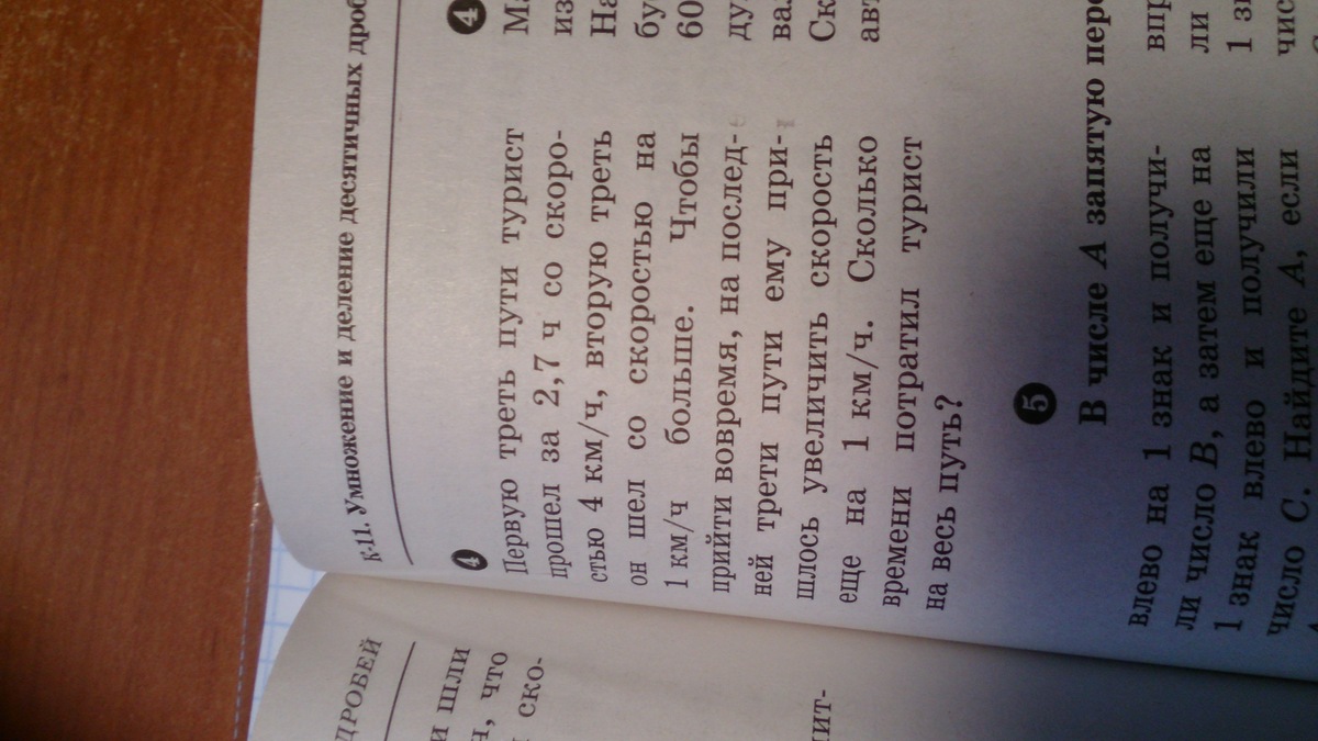 вторую треть он шел со скоростью 4+1=5 км/ч